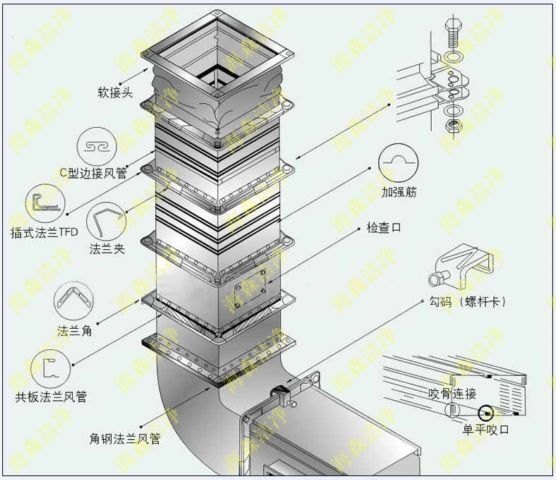 2、鍍鋅板風(fēng)管垂直安裝,間距不應(yīng)大于4m,單根直管至少應(yīng)有2 個(gè)固定點(diǎn)。